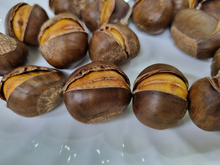 햇밤의 계절인 가을이 오면서 간식으로 제격인 칼집 약단밤을 주문했어요.