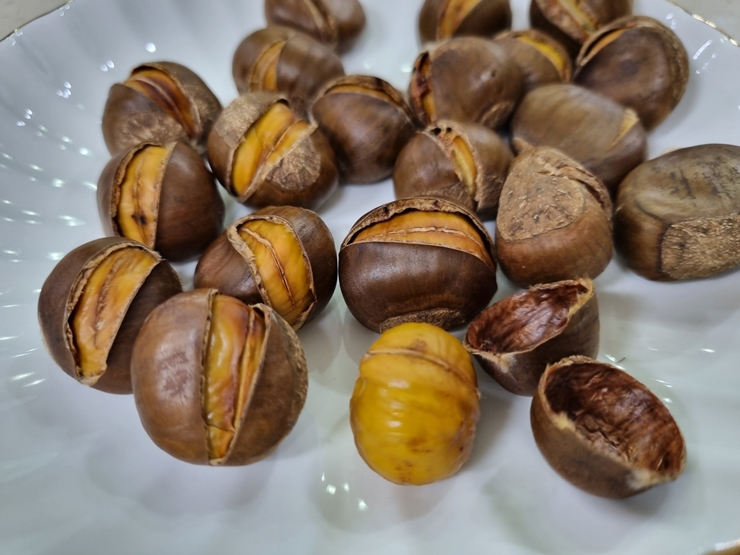 밤이 잘 까지니 하나씩 톡~톡~ 까먹는 손맛도 좋고 뜨거울때 후~후~ 불어 먹는 맛이 더 좋은것 같네요.
