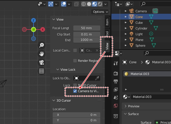 이때 단축키 N → View → Camera to view 메뉴를 체크해주면 마우스 휠로 줌인, 줌아웃이 됩니다.
