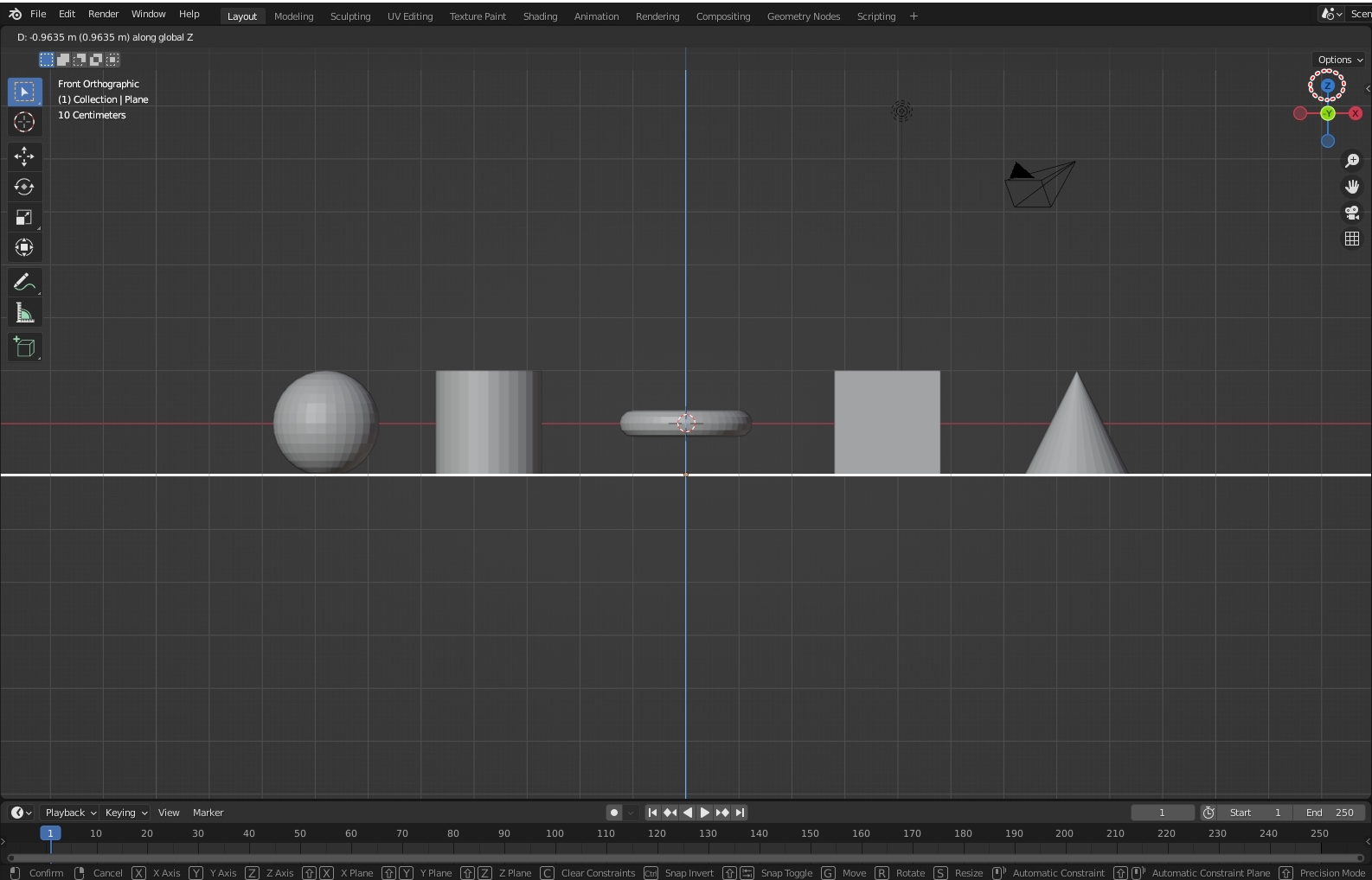 X축의 수평으로 정렬하기 위해서 오브젝트를 선택한 후 G → X 를 누른 후 원하는 위치에 이동시켜줍니다.