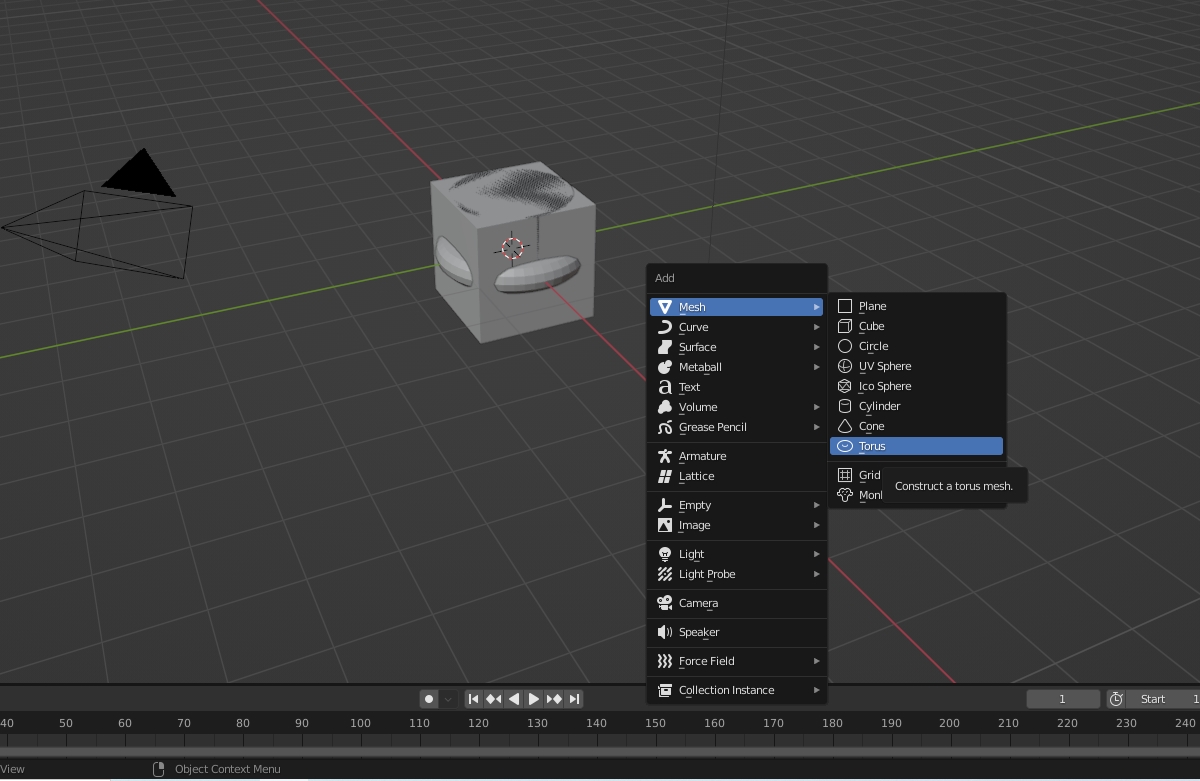 오브젝트를 추가하기 위해서 add 메뉴 단축키 Shift + A 를 눌러서 Mesh에서 오브젝트를 선택해줍니다.