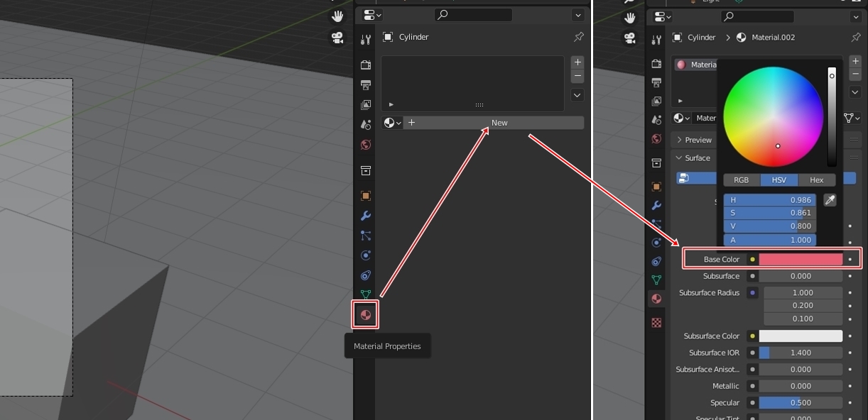 오브젝트마다 원하는 색상을 입혀줍니다. Material Proerties → New → Base Color를 변경해줍니다.