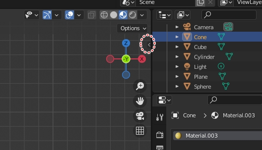 오브젝트마다 기본 색상을 맵핑하기 위해서 Viewport Shading 모드에서 Material Preview를 선택합니다.