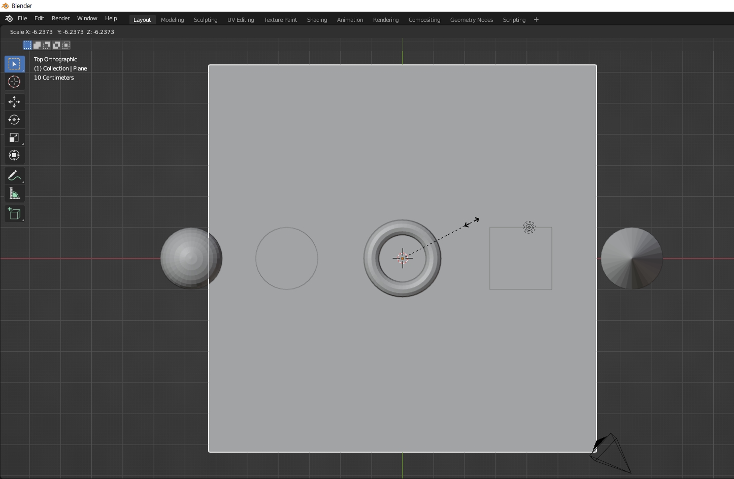 렌더링시 바닥면이 화면에 다 채워질 정도로 스케일(단축키 S)을 마우스로 드래그해서 키워줍니다.