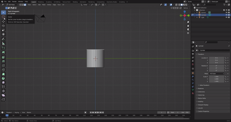 스핀 기능을 사용하기 위해서 오브젝트 선택 후 탭(Tab)키를 눌러서 에디터 모드로 전환합니다.