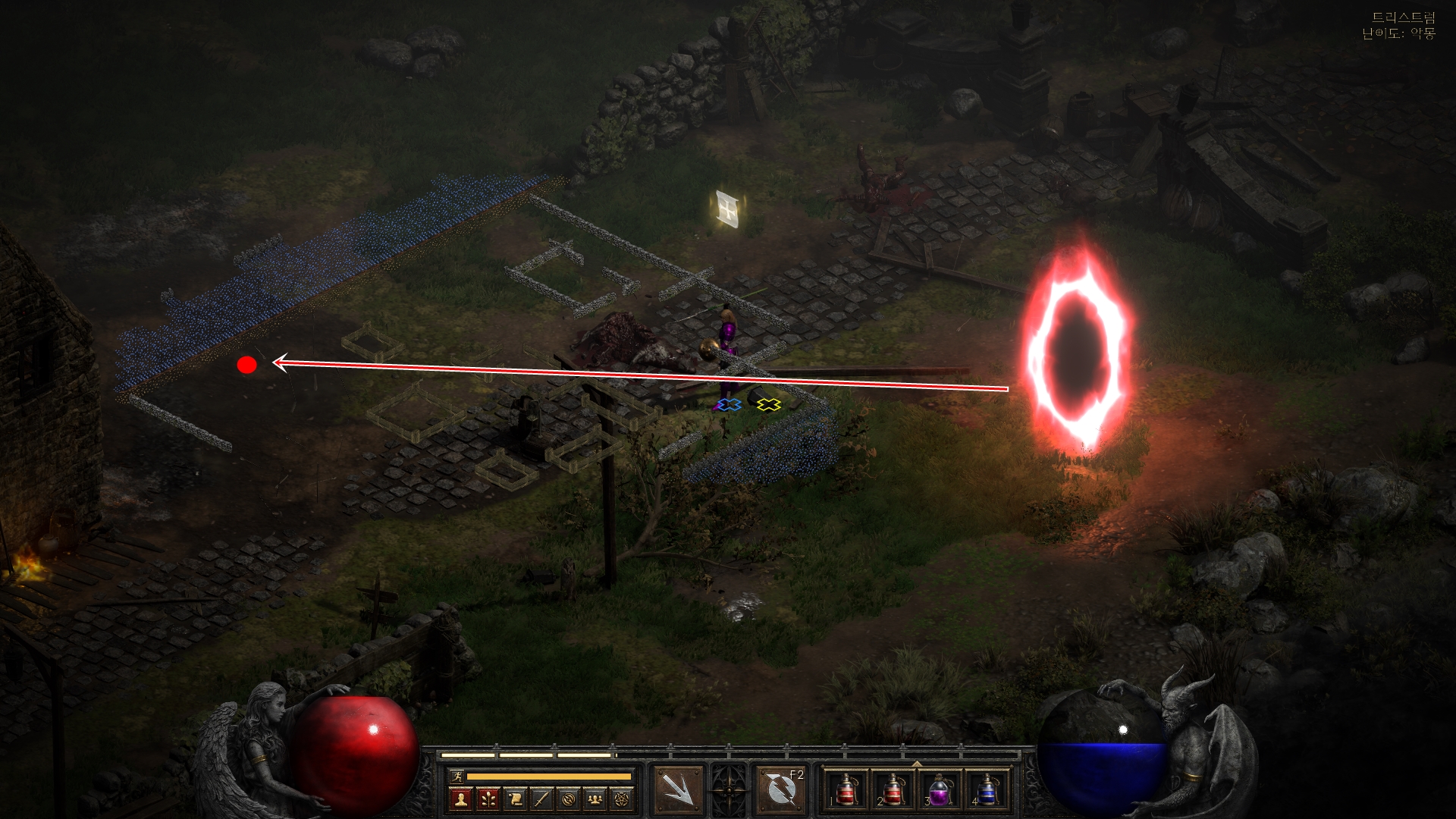 트리스트럼 포탈이 있는곳은 지도에 노란색으로 표시가 되어 있습니다.