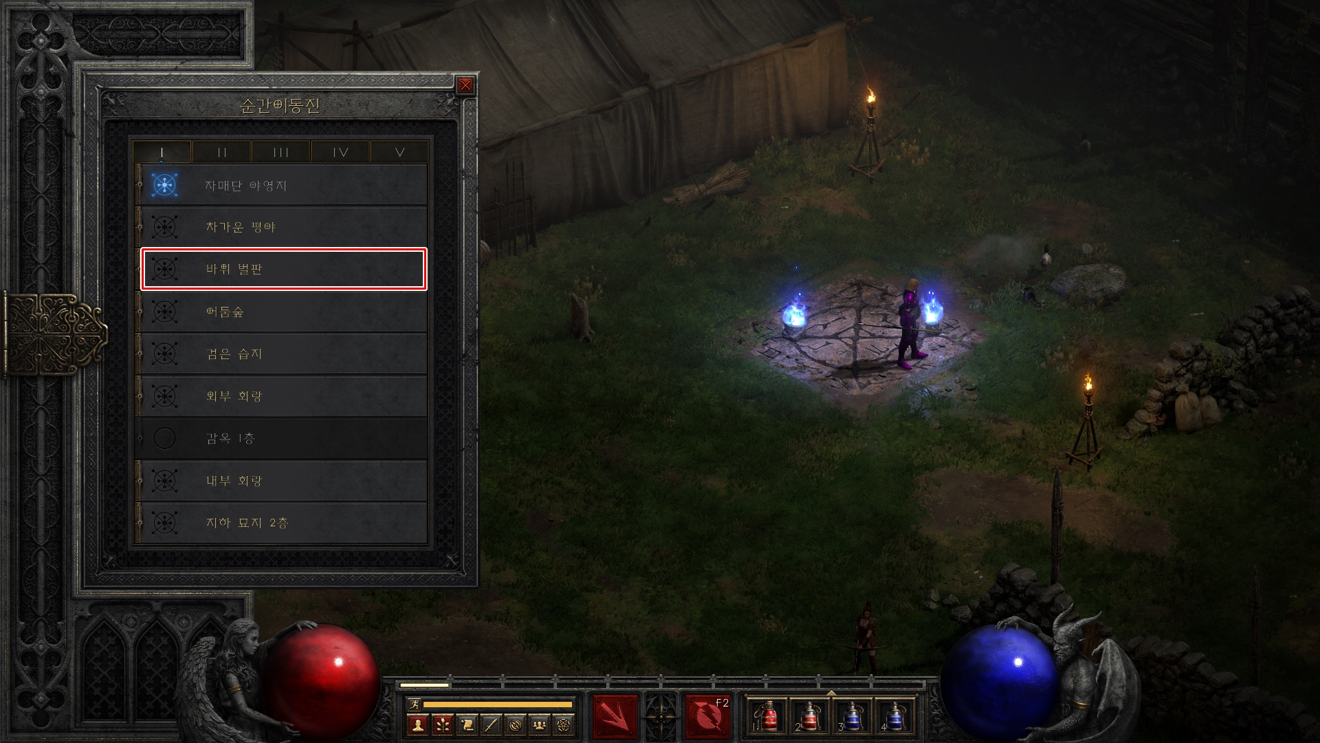 액트1의 바위벌판(스토니필드)으로 이동합니다.