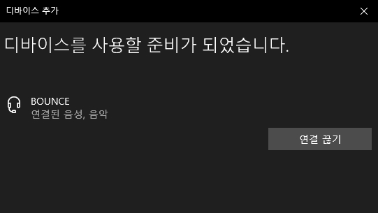원하는 장치를 클릭하면 "디바이스를 사용할 준비가 되었습니다" 라고 메시지가 뜨면서 연결이 됩니다.