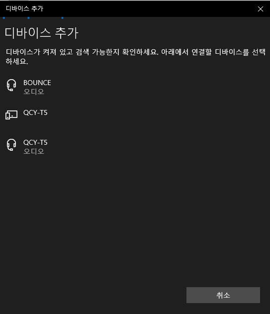 연결 가능한 장치들이 디바이스 추가 목록에 표시가 됩니다.