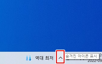 혹시 아이콘 모음들이 안보이면 볼륨 설정 옆에 보면 위쪽 삼각형 괄호를 클릭하게 되면 숨겨진 아이콘이 표시가 됩니다.