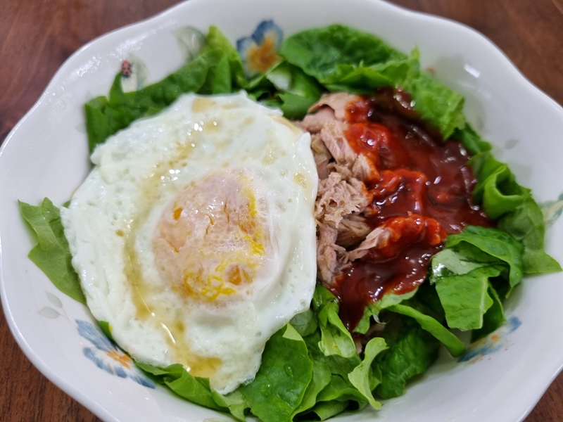 삼겹살에 쌈도 싸먹고 상추참치비빔밥으로 틔운 미니에서 기른 상추의 첫수확을 마무리 하였네요
