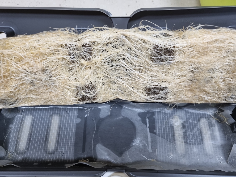 씨앗키트 사이즈에 맞춰서 그로단을 칼로 잘라 주고 씨앗키트에 끼우면 됩니다. 정확하게 안잘라도 힘으로 쏙 밀면 들어갑니다.