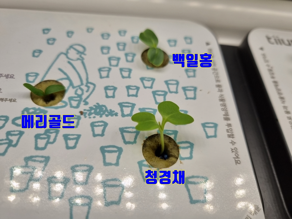 상추 재배가 끝나갈 때쯤 틔운 미니로 꽃을 키워보면 어떨까 하는 생각이 들어 메리골드와 백일홍 씨앗을 주문했어요.