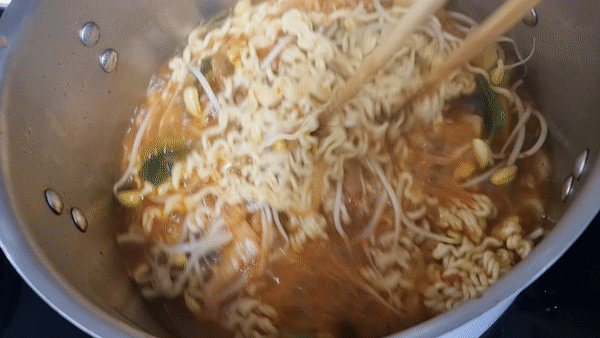 콩나물과 면을 뒤적뒤적~