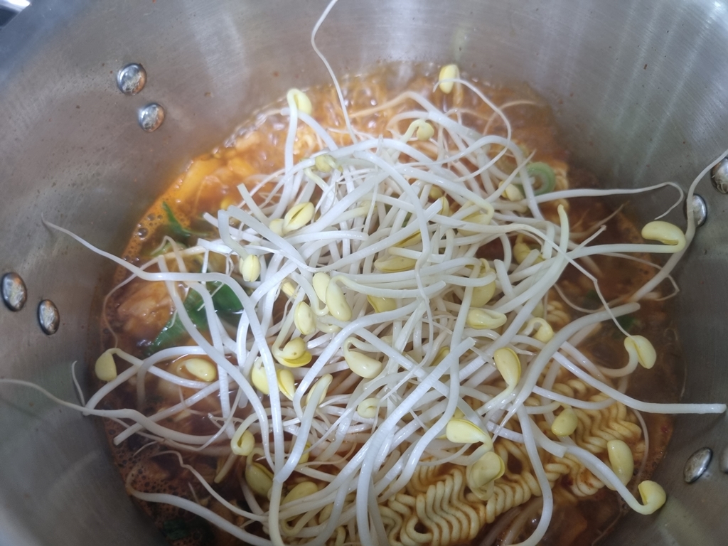 아삭한 식감을 살리기 위해 콩나물을 맨 나중에 넣었어요.
