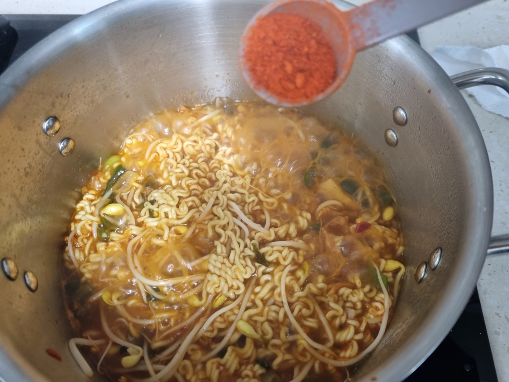 좀 더 얼큰한 국물을 위해 고추가루 1티스푼 넣어주구요.