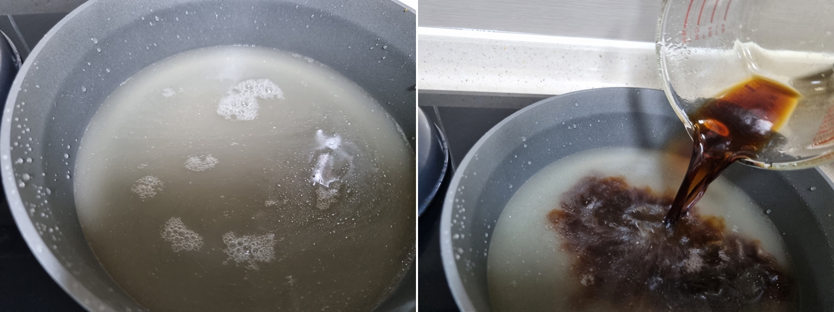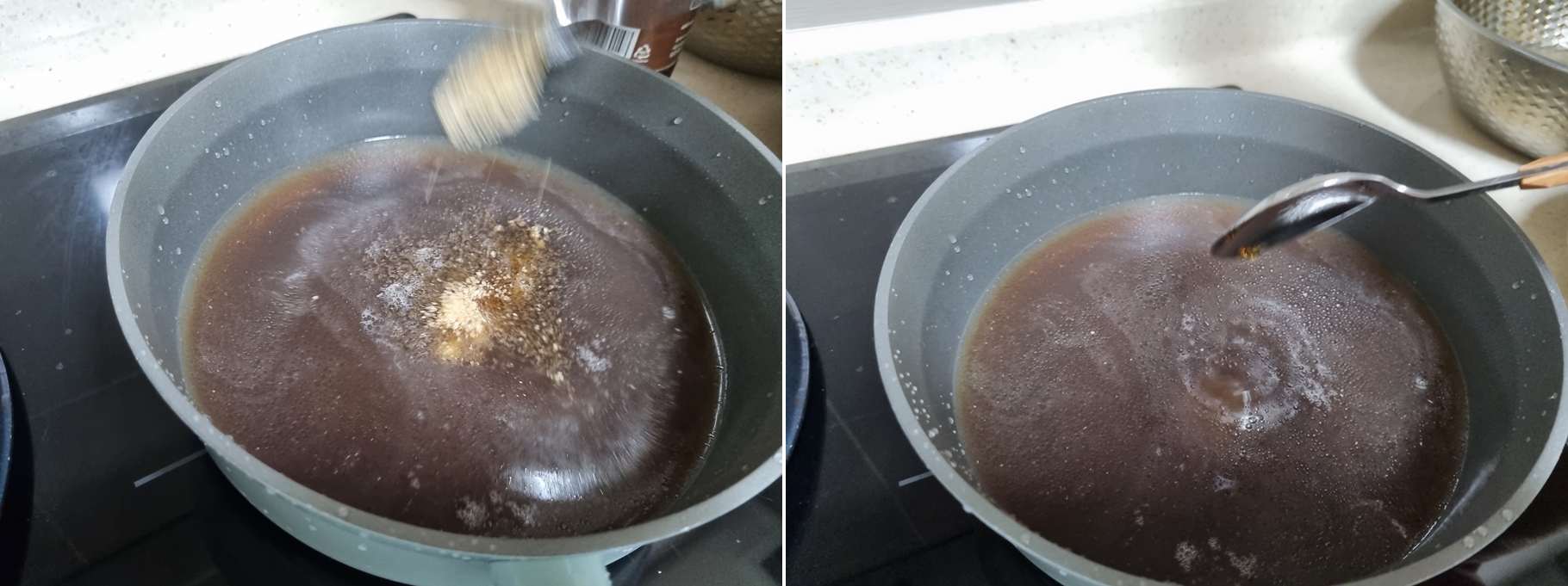 나중에 물엿을 넣을꺼라서 설탕 1T만 넣어줬어요.
