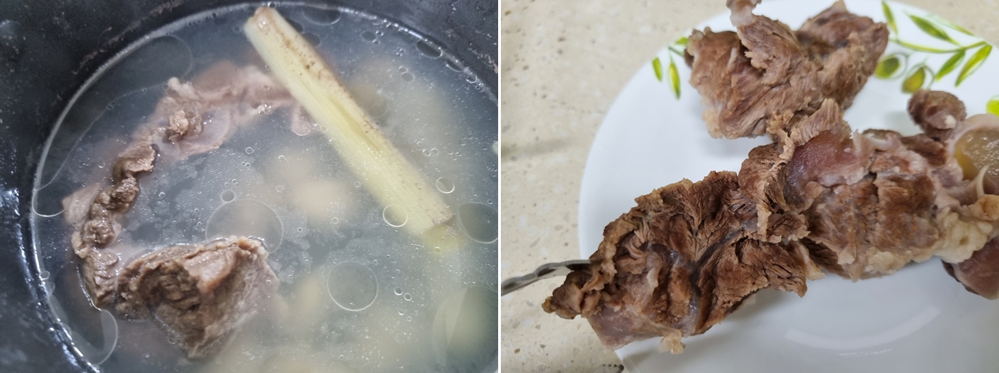 사태 삶은 물은 버리지 말고 육수로 이용해주세요. 뜰채로 야채만 건져내세요.