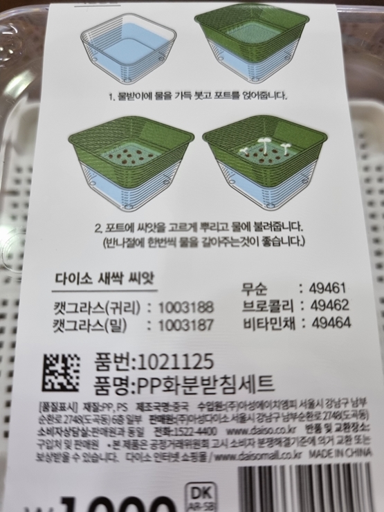 수경재배기인 틔운 미니로 상추, 청경채, 백일홍, 메리골드 등 이런 저런 식물들을 키우다 보니 다이소에서 발견한 새싹용 화분이 있어서 호기심에 구매해봤어요.