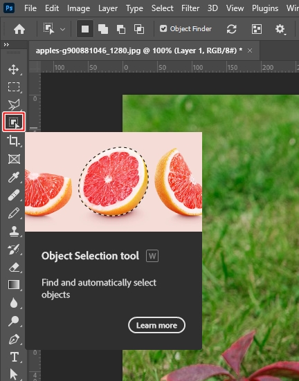 그중에서 Object selection tool(개체 선택 도구)은 이미지에서 원하는 피사체만 선택해서 이미지를 배경과 분리할 수 있습니다. 피사체와 배경의 경계가 분명하고, 색상 대비가 강할 때 이미지와 배경이 깔끔하게 분리되어 좋은 결과물을 얻을 수 있습니다.
