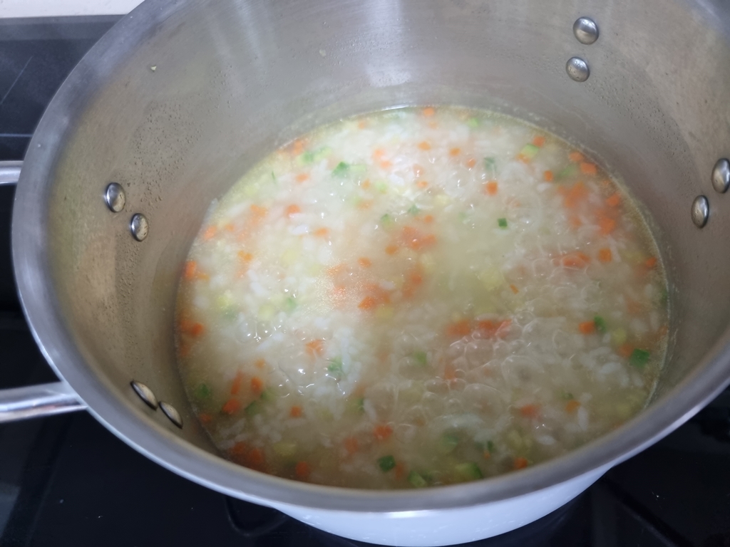 입맛도 없고 속도 불편하고 뭘 먹을까 고민하다가 쉽게 만들어 먹을 수 있는 야채 계란죽을 만들어 먹었네요.