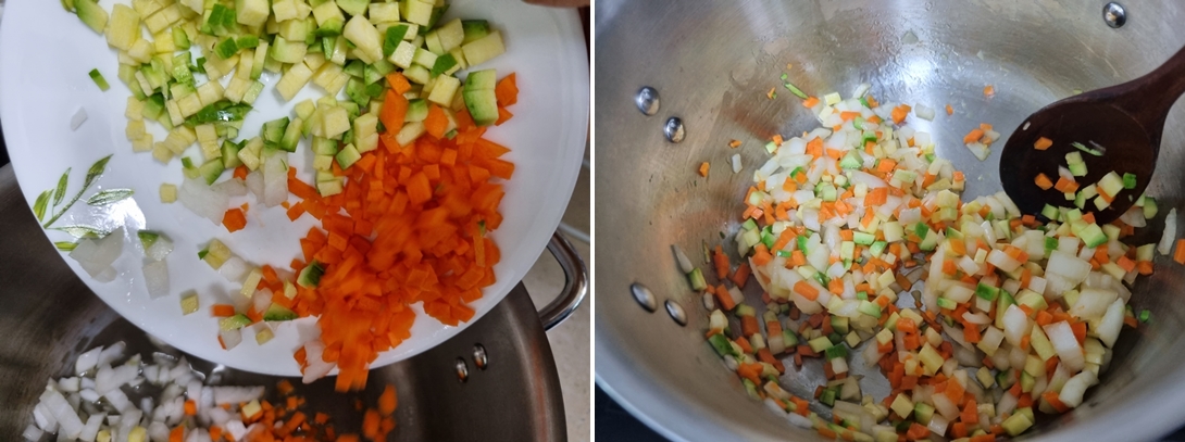 당근, 애호박, 양파는 볶음밥용 사이즈보다 작게 다져주세요.