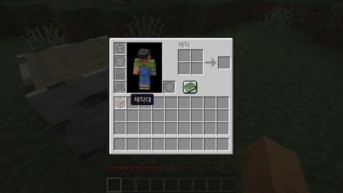 이 나무판자를 마우스 오른쪽 버튼 클릭해서 제작툴에 하나씩 올려주면 제작대가 만들어 집니다.