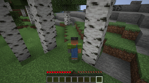 자작나무가 보이네요. 나무 앞으로 가서 마우스 왼쪽 버튼을 클릭하고 있으면 나무 원목을 구할 수 있어요.