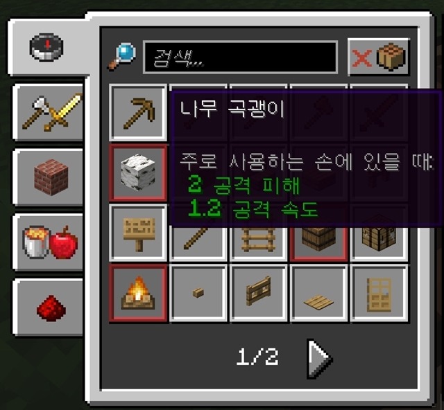 도끼는 나무 재료들을 빨리 부술 수 있어서 초반에 많이 유용하게 사용됩니다.