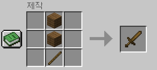 나무 검 : 나무 판자 2개 + 막대기 1개