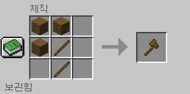나무 도끼 : 나무 판자 3개 + 막대기 2개