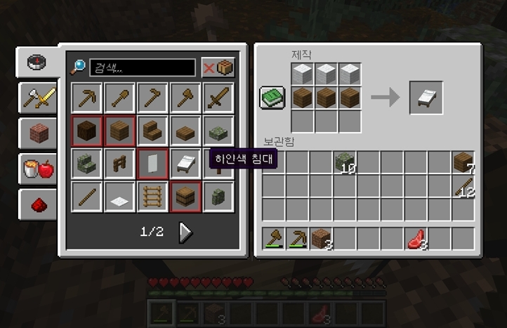 지금까지 돌도구 조합과 침대 만드는 방법에 대해 알아보았는데요. 다음편에는 석탄을 캐서 횃불 만들기에 대해서 포스팅해보겠습니다.