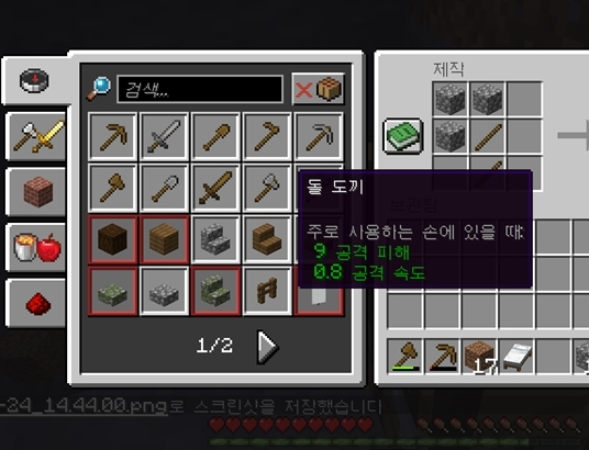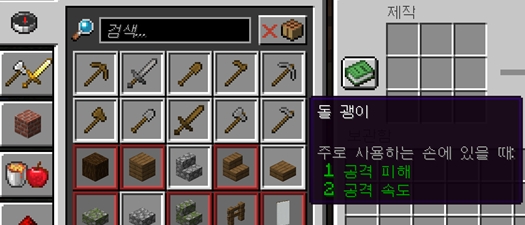 아무래도 나무로 돌을 캐다 보니 나무 곡괭이의 내구도가 금방 떨어지네요.