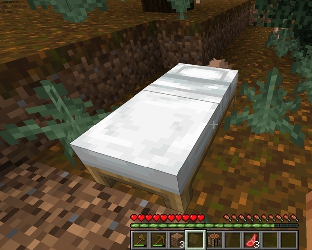 침대를 마우스 우클릭하게 되면 리스폰(부활 장소)을 지정할 수 있고, 밤이 되어도 침대에 누우면 밤을 건너뛰는 기능이 있어요.