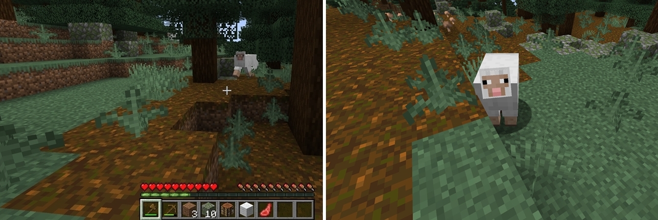 재료 구하러 돌아다니다 보면 여러 동물들과 마주치게 되는데요. 침대를 만들기 위해서는 양털이 3개가 필요합니다.