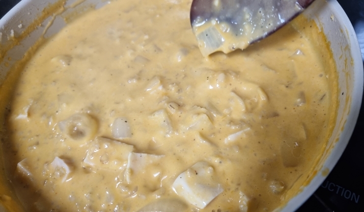 치즈를 넣게 되면 조금씩 꾸덕해지기 시작합니다.