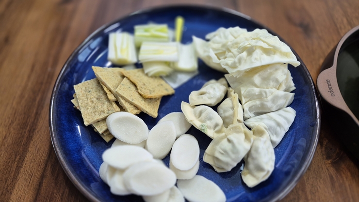 라면, 떡, 만두, 어묵까지 같이 먹으니 1인분으로 꽤 든든한 한끼가 되네요.