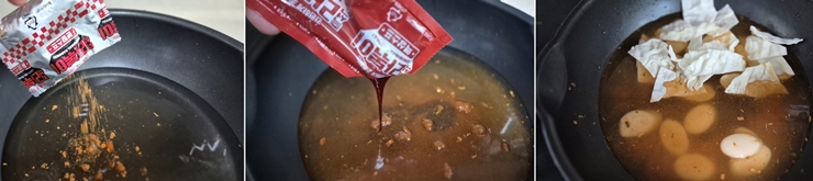 4분정도 끓이면 어묵과 만두에 양념이 베기면서 라볶이 국물도 자작해집니다.