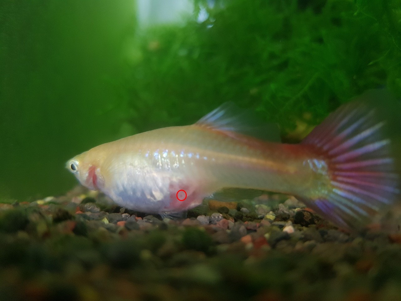 2. 먹성 좋은 구피가 먹이 반응이 별로 없고 어항의 어두운 구석이나 히터 부근, 여과기 부근의 구석진 곳에 혼자서 미동없이 유영하고 있으면 출산이 임박한 상황입니다. 이때는 성격이 예민해져 있어서 다른 구피가 근처에 오면 공격을 합니다.