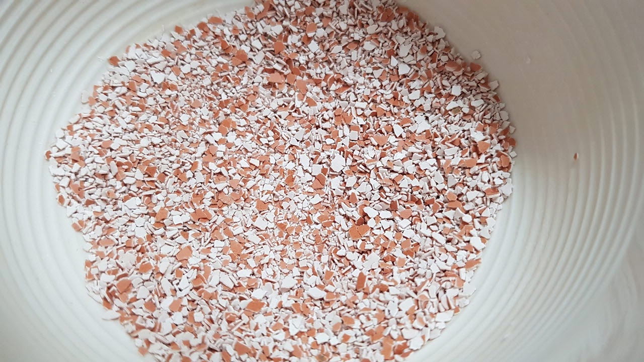 이제 잘게 부숴야하는데요. 믹서기나 절구로 사용하시면 되는데요. 절구를 이용하면 적당한 크기로 잘게 부숴집니다.