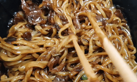 짬뽕면을 국물에 넣고 잘 섞어주면 짬뽕이 완성되네요.