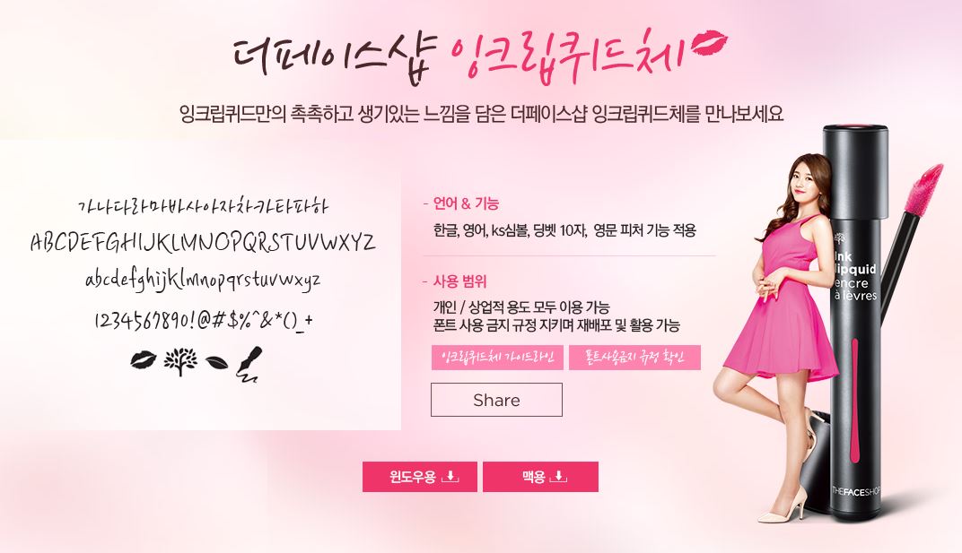 더페이스샵 잉크립퀴드체 http://www.thefaceshop.com/event/lipquid/main.jsp#FontDownload