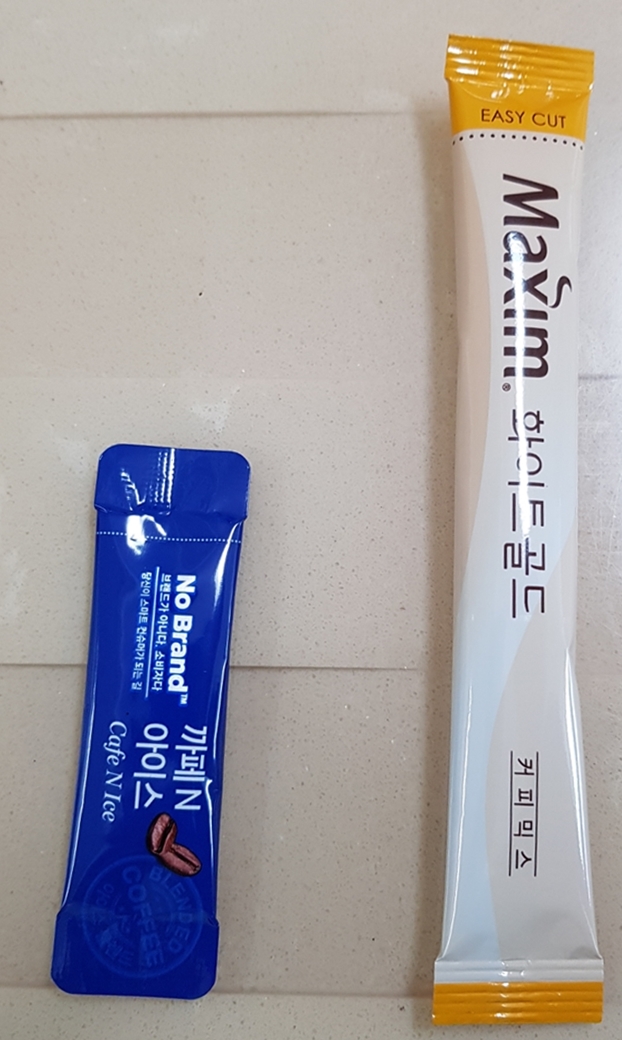 일반 커피믹스는 11.7g 인 반면 노브랜드 아이스커피는 1g 이에요.