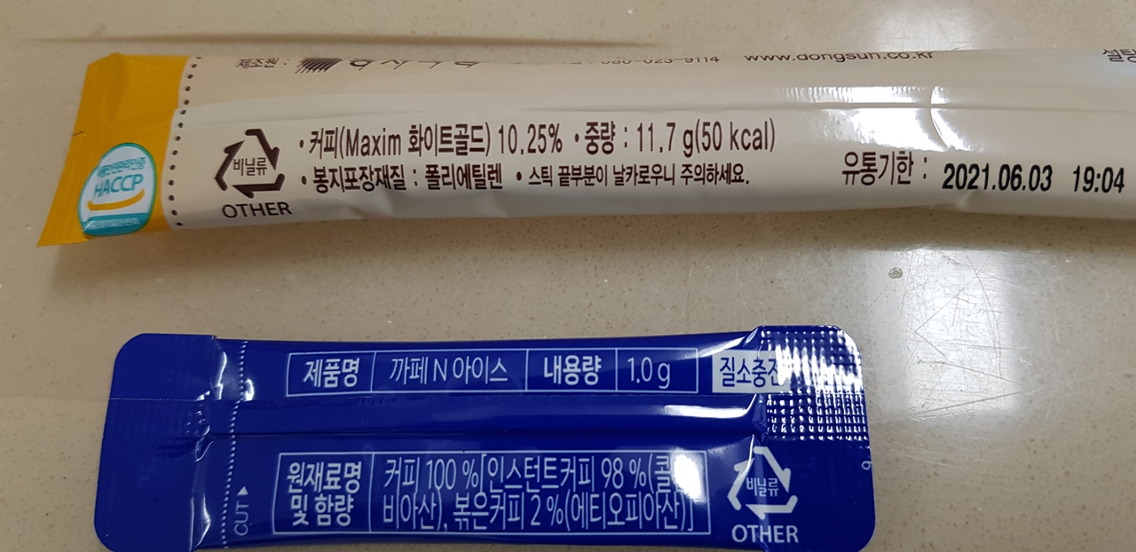 스틱 사이즈가 아담하죠? 일반적으로 먹는 믹스 커피와 사이즈가 비교가 됩니다.
