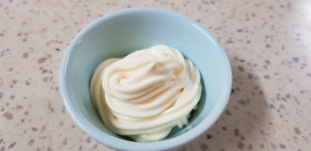 소스 종지에 마요네즈를 3~4큰술 짜주세요. 대충 마요네즈를 짜보니 3~4큰술 정도 되는 양이네요.