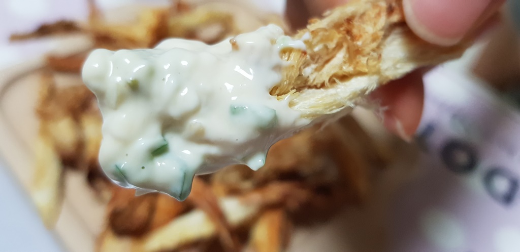 마요네즈의 부드러움과 간장의 짭조름과 청양고추의 매콤함이 어우려지는 마요네즈 간장소스에 찍어 먹으니 은근 중독성이 강해서 계속 먹게 되네요ㅎ