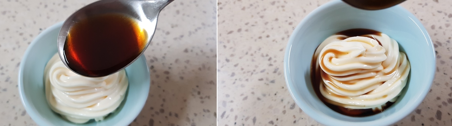 마요네즈에 간장을 한큰술 넣어주세요. 집에서 만든 만능간장이라 진간장보다는 간이 약해서 한큰술 넣었어요.